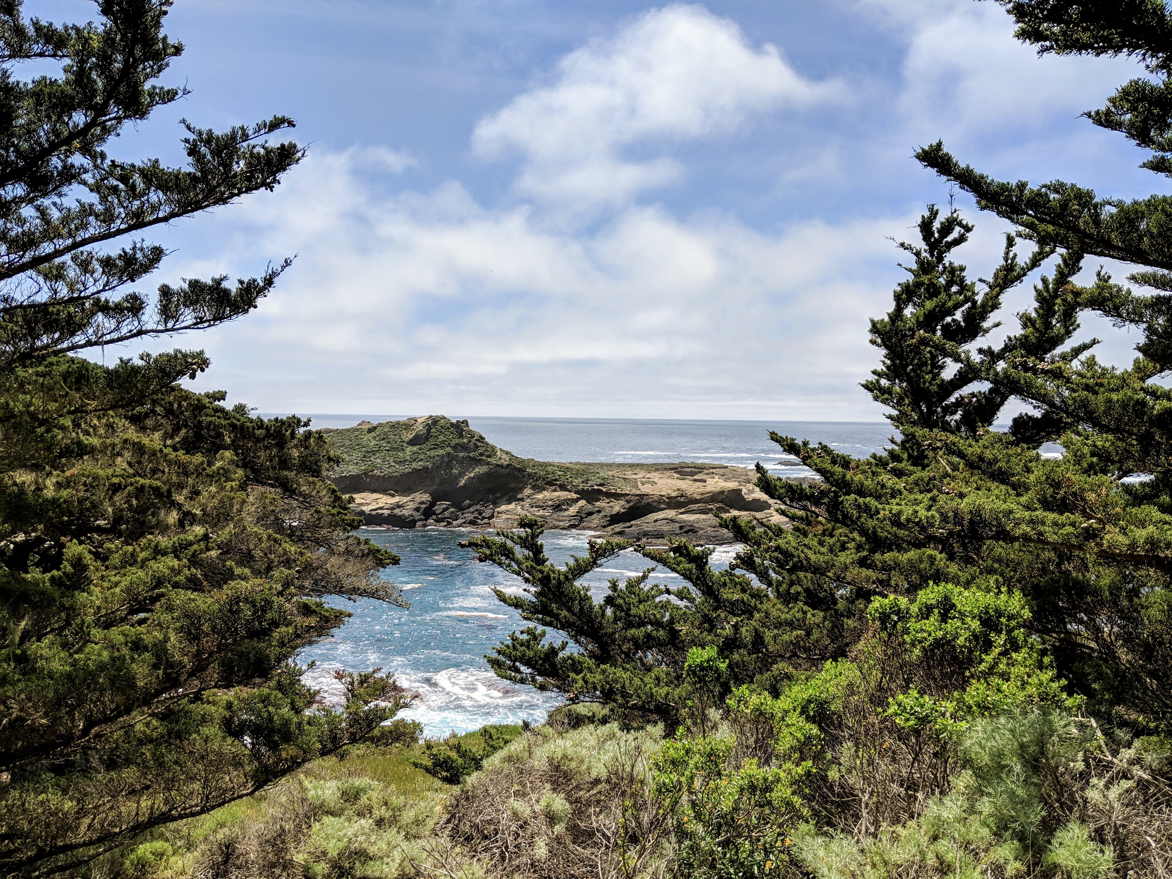 Sulla sinistra, fra gli alberi, si intravedono la costa rocciosa di Point Lobos e l’Oceano Pacifico.