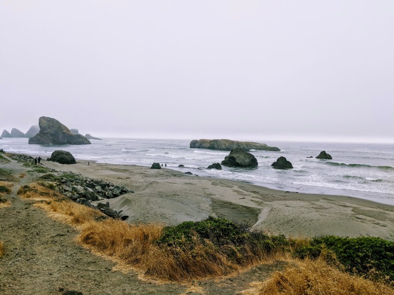 Distanza: 140 Kilometri Appena svegli siamo scesi ad esplorare la spiaggia avvolta nella nebbia di fronte al nostro motel, il Winderemere on The Beach. Dopo una colazione a base di Brownies e chocolate chips cookies da Bandon Cofee Cafe, abbiamo cominciato la nostra discesa verso sud, lungo la panoramica Highway 101. Come prima fermata abbiamo scelto il Capo Blanco State Park, dove abbiamo potuto ammirare da vicino il più antico faro dell’Oregon. Poi, abbiamo proseguito lungo la costa fino al Samuel Boardman Scenic Corridor, una splendida strada panoramica con vista sull’Oceano. Dopo una pausa per una passeggiata nella suggestiva Lone Ranch Beach, dove i bambini si sono divertiti ad arrampicarsi sulle rocce vulcaniche sulla spiaggia, abbiamo proseguito fino a Brookings, l’ultima cittadina sulla costa dell’Oregon prima del confine con la California.