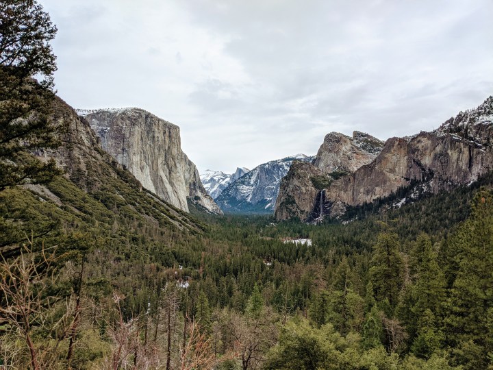 Take a few minutes to admire the Yosemite Valley with its famous Bridalveil Falls and the granite peaks of El Capitan and Half Dome. This is one of California’s most popular postcard images.