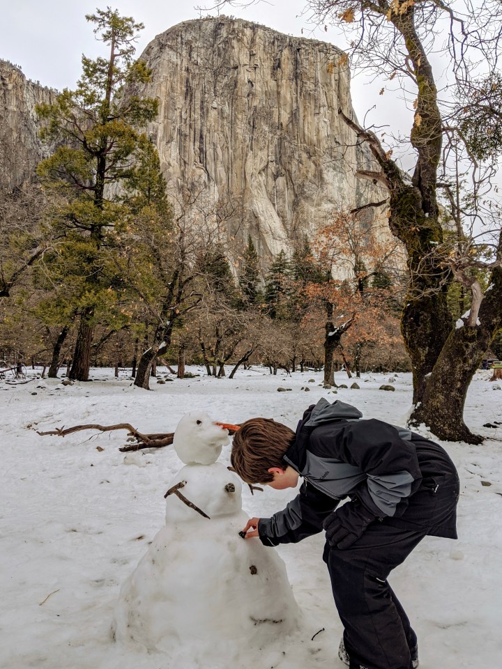 The snow-covered El Capitan Meadows are the ideal place for some play on the snow.